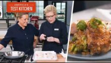 From America’s Test Kitchen. Ready for tender and juicy braised chicken thighs with a crispy skin? Today, Sam Block shows Julia Collin Davison the trick, by simmering the thighs in the oven, skin side up. Sam builds a flavorful braising liquid of chicken broth, orange juice, and chopped fennel, and adds cracked olives to bring…
