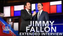 From The Late Show with Stephen Colbert. Strap in and watch as Jimmy Fallon and Stephen Colbert refuse to end their interview at The Late Show and instead take the Ed Sullivan Theater crowd for a wild and hilarious ride that was too long to fit into the CBS broadcast. #Colbert #Comedy #JimmyFallon #FallonTonight #TheTonightShow…