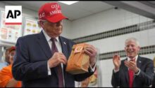 From Associated Press. "I am going to get some stuff for Air Force One and I am going to get the hell out of here, alright? Hamburgers for the whole place," President Donald Trump told supporters in a Whataburger restaurant in Corpus Christi, Texas. Subscribe: http://smarturl.it/AssociatedPress Read more: https://apnews.com This video may be available for…
