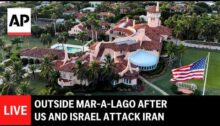 From Associated Press. Live view from outside Mar-a-Lago, President Donald Trump’s home and club in Florida, from where he announced that the U.S. had begun “major combat operations in Iran” as the United States and Israel launched an attack on Tehran. #iran #trump #live #israel