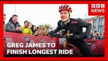From BBC News. Radio 1 Breakfast’s Greg James is to finish his biggest endurance test of his life in Radio 1’s Longest Ride for Red Nose Day – an epic 1,000km tandem cycle across the UK. Subscribe here: http://bit.ly/1rbfUog For more news, analysis and features visit: www.bbc.com/news #BBCRadio1 #BBCNews
