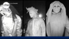 From ABC News. The surreal sight of volcano watchers silhouetted against the bright orange light of Mount Kilauea’s lava fountain was captured during its most recent eruption.