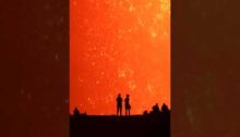 Mesmerizing sight as volcano watchers silhouetted against Kilauea’s lava fountain