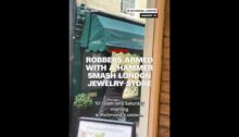 From CNN. Two masked men with a sledgehammer smashed the front window of a jewelry shop in Richmond, west London. Video shows the pair fighting with staff inside as they try to grab the jewelry. Police say an investigation is underway.
