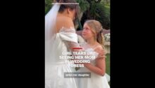 From CNN. Megan Jenkins shared a heartwarming video of her 9-year-old daughter Ava tearing up after seeing her mom in her wedding dress.