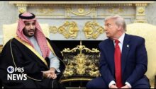 From PBS NewsHour. 🛎️ Tell us: We want your thoughts in our 2025 Audience Survey: https://forms.office.com/r/rq1ec4T4zV President Donald Trump repeated his attacks on Federal Reserve Chair Jerome Powell on Wednesday, saying he’d ‘love to fire his ass’ and threatening to do the same to Treasury Secretary Scott Bessent. “I’ll be honest, I’d love to fire…